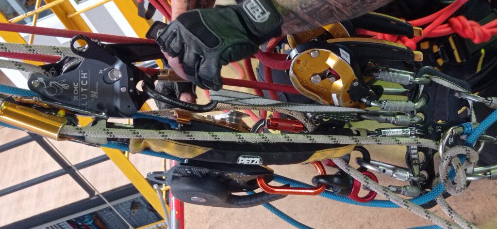 En mi forma de trabajar, la redundancia también se construye desde el equipo. El jefe de equipo pide una primera verificación completa de la maniobra: conexiones, orientación de los mosquetones, cierres, compatibilidad de dispositivos y coherencia general del sistema. Después, se promueve una «segunda verificación» colectiva con el sistema cargado , donde los propios técnicos revisan visual y táctilmente el sistema antes de empezar la maniobra. SI, dos chequeos de seguridad.