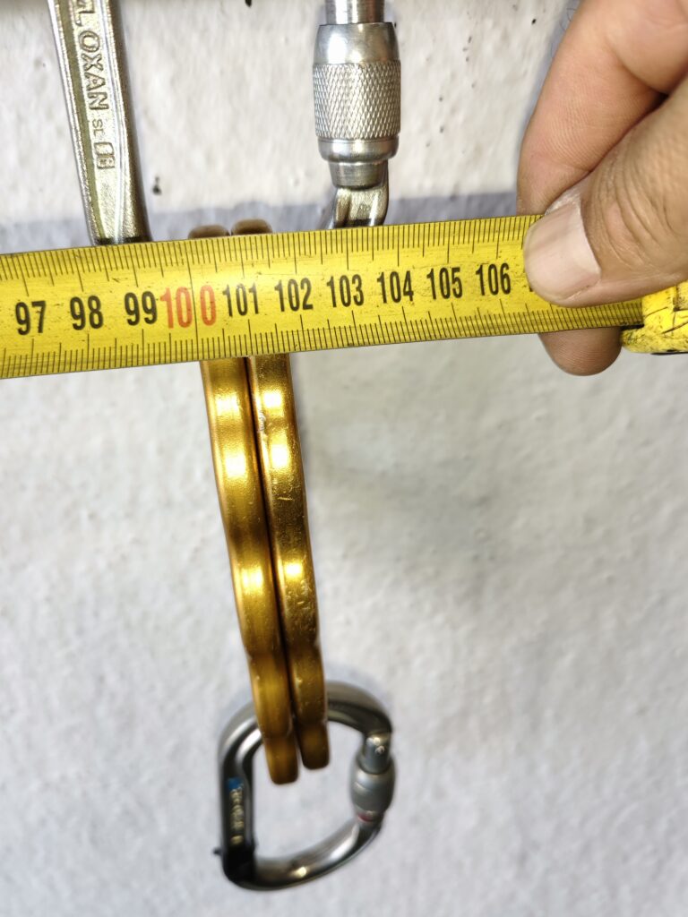 Un ejemplo claro lo vemos cuando se apilan dos placas de anclaje para crear una “redundancia”. Esta práctica puede parecer más segura, pero no siempre lo es. Muchos mosquetones están diseñados para trabajar sobre una superficie de 12 mm. Cuando se introducen dos placas, ese grosor puede aumentar hasta los 18 mm o más, lo que puede comprometer la resistencia real del mosquetón.